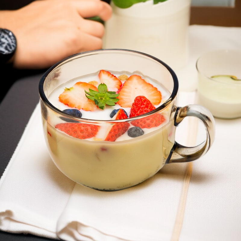 ● Przezroczysty szklany kubek na jogurt pozwala dokładnie zobaczyć warstwy składników, co czyni każdy posiłek bardziej apetycznym i estetycznym. ● Wykonany z wysokiej jakości szkła, jest odporny na zarysowania i łatwy do mycia, dzięki czemu świetnie sprawdzi się w codziennym użytkowaniu. ● Ergonomiczny kształt kubka zapewnia wygodne trzymanie, a szczelna pokrywka umożliwia bezpieczne przechowywanie jogurtu i dodatków w podróży. ● Idealny do przygotowywania zdrowych śniadań, przekąsek oraz deserów – doskonały wybór dla osób dbających o zbilansowaną dietę.